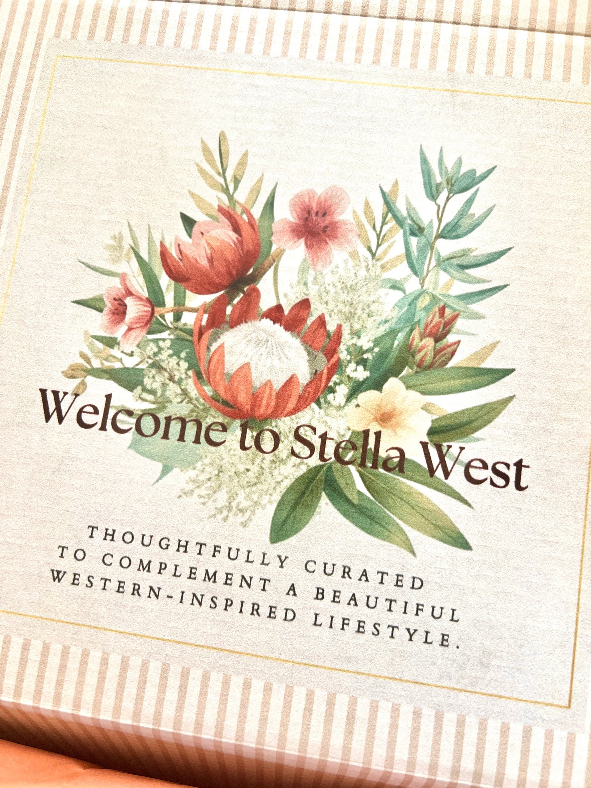 Each box includes 5–7 hand-picked items with that Stella West touch: